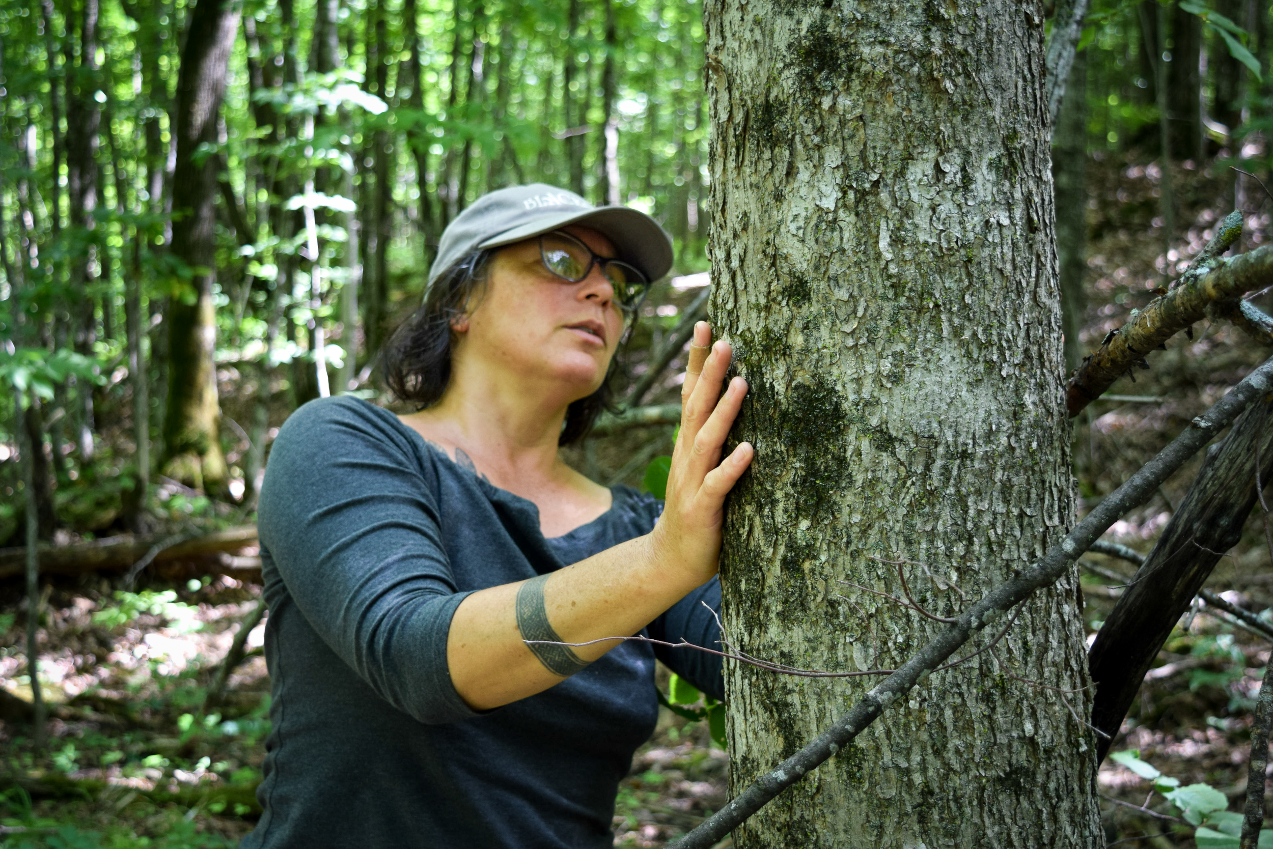 above: April Stone examines a black ash tree for selection
