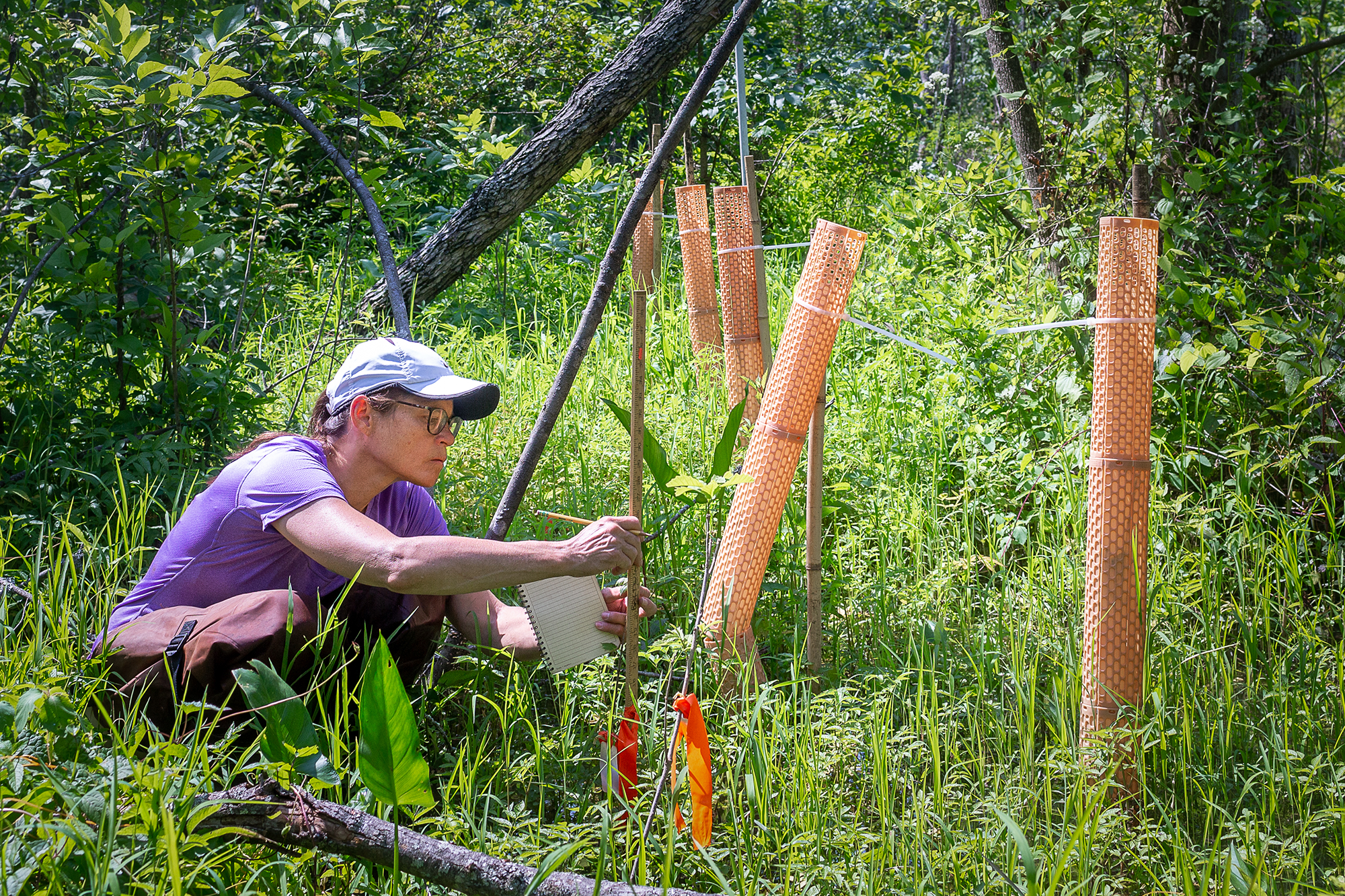 University of Maryland ecologist Diane Leason measures saplings, Piscataway Park