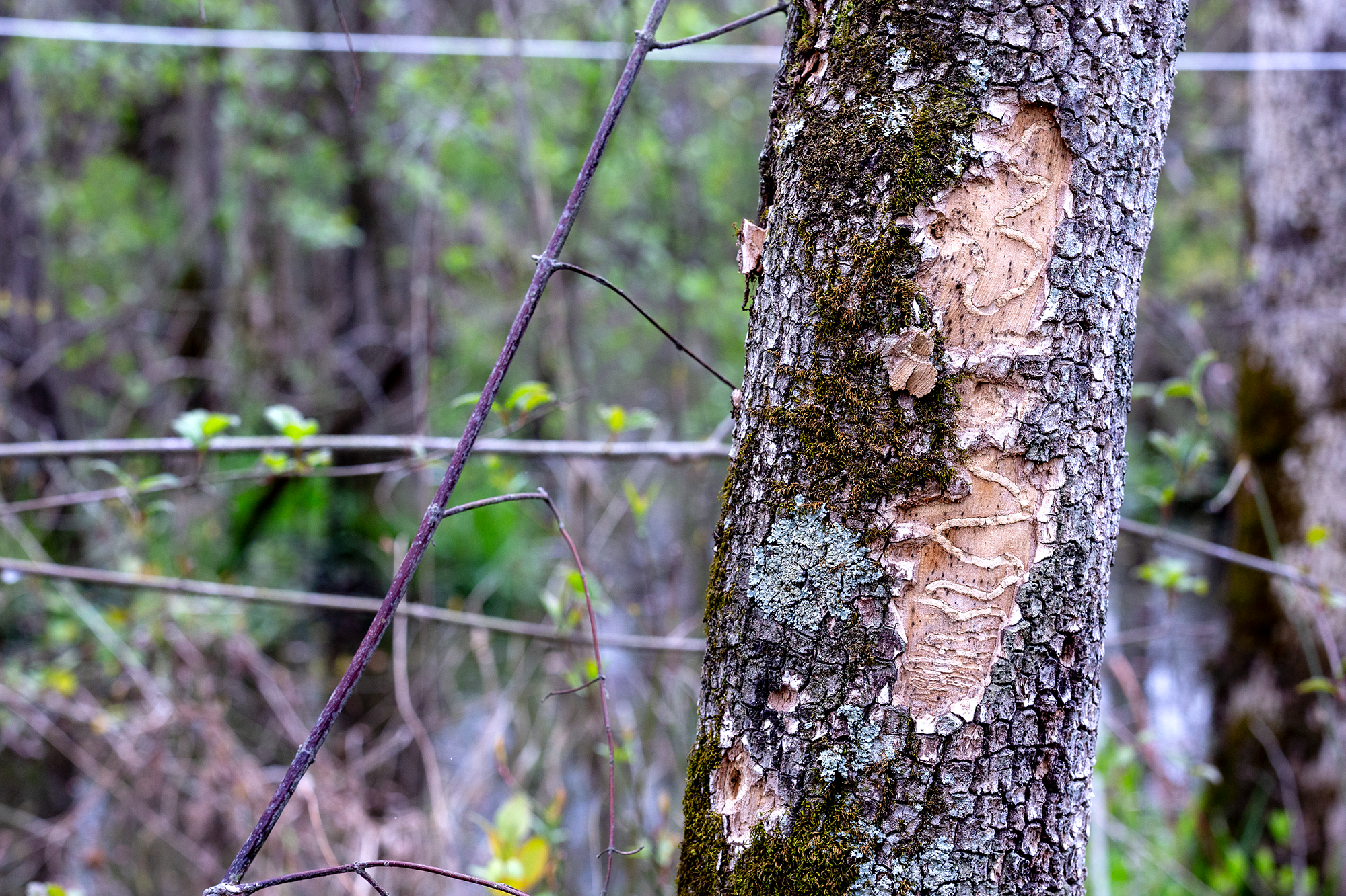 “Gallery” created by an emerald ash borer larva, Tuckahoe Creek wetland