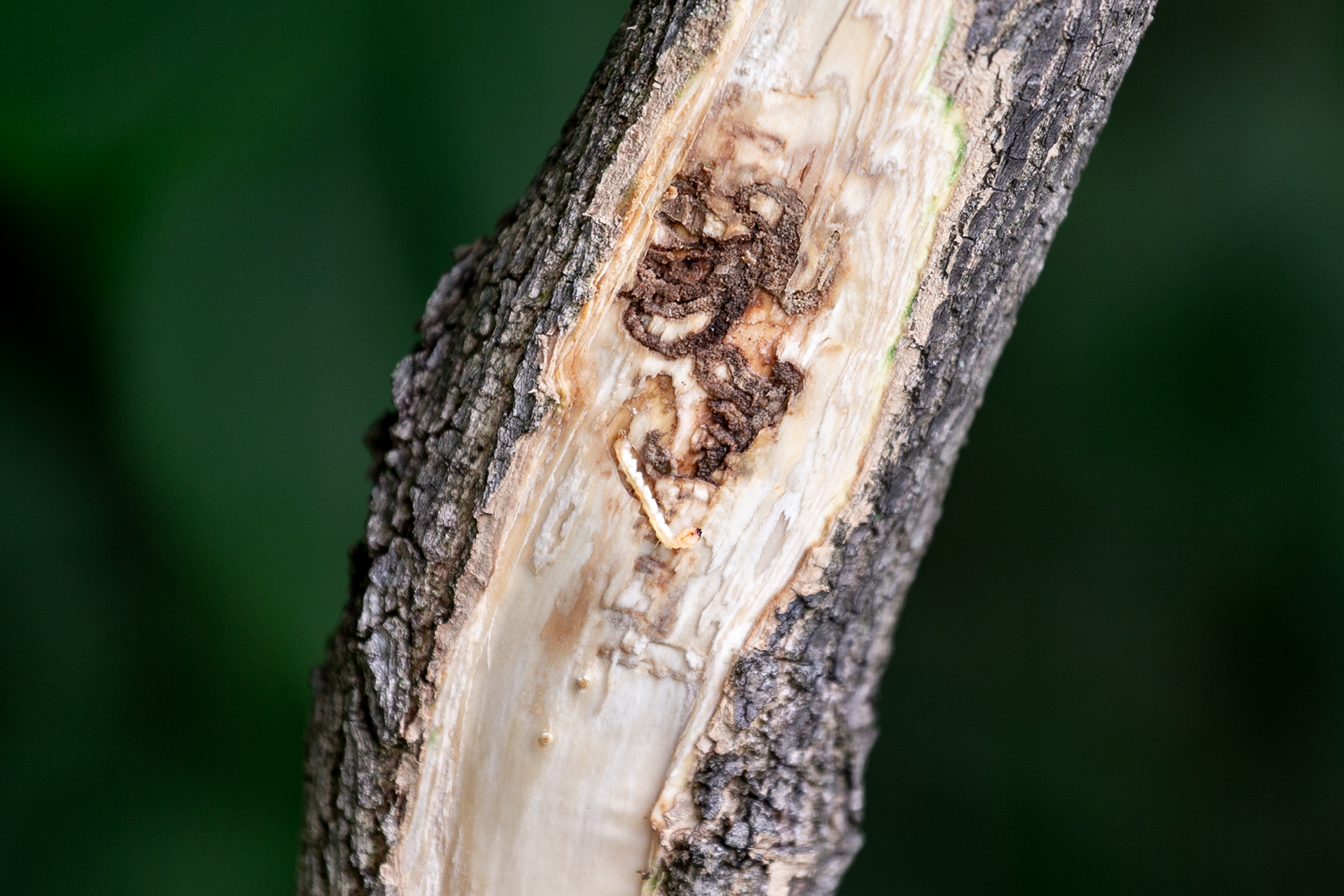 Emerald ash borer larva exposed, University of Maryland campus