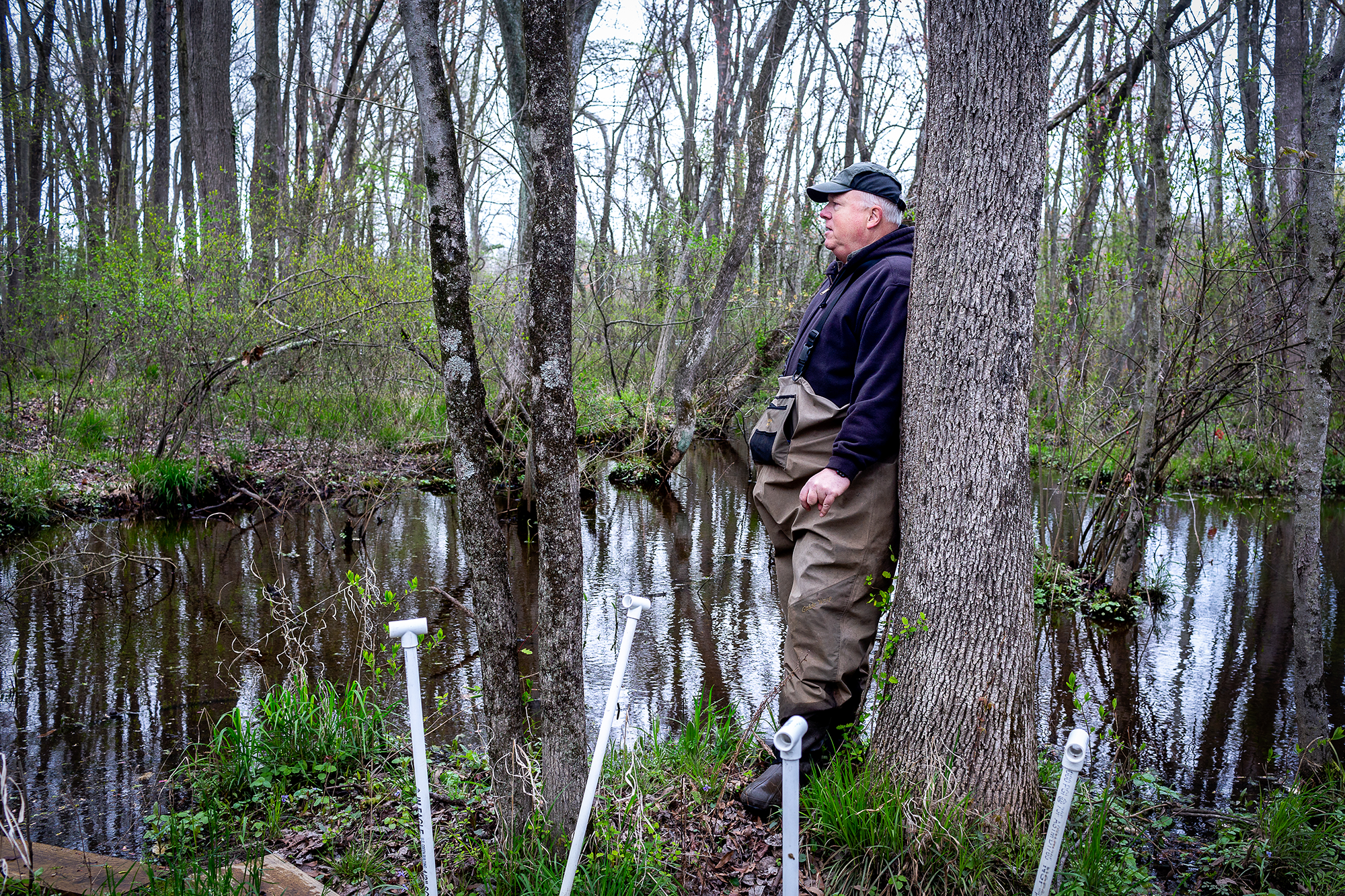 University of Maryland ecologist Andrew Baldwin takes in widespread ash tree devastation, Tuckahoe Creek wetland